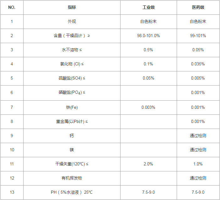 性 狀:無色透明結晶或白色顆粒。一般為三水物。密度1.45g/cm3。熔點58℃。在干燥空氣中風化,123℃失去結晶水。無水物熔點324℃。密度1.528g/cm3。稍溶于乙醇、乙醚。